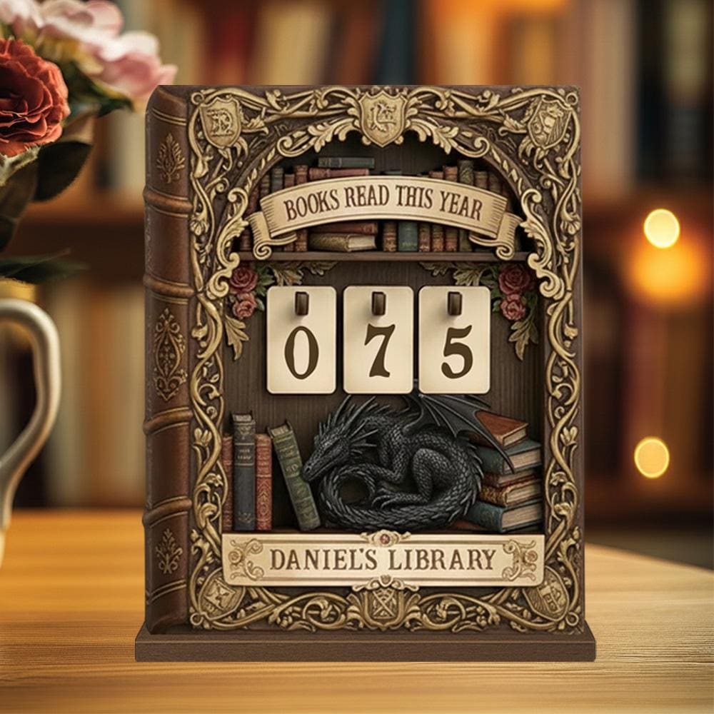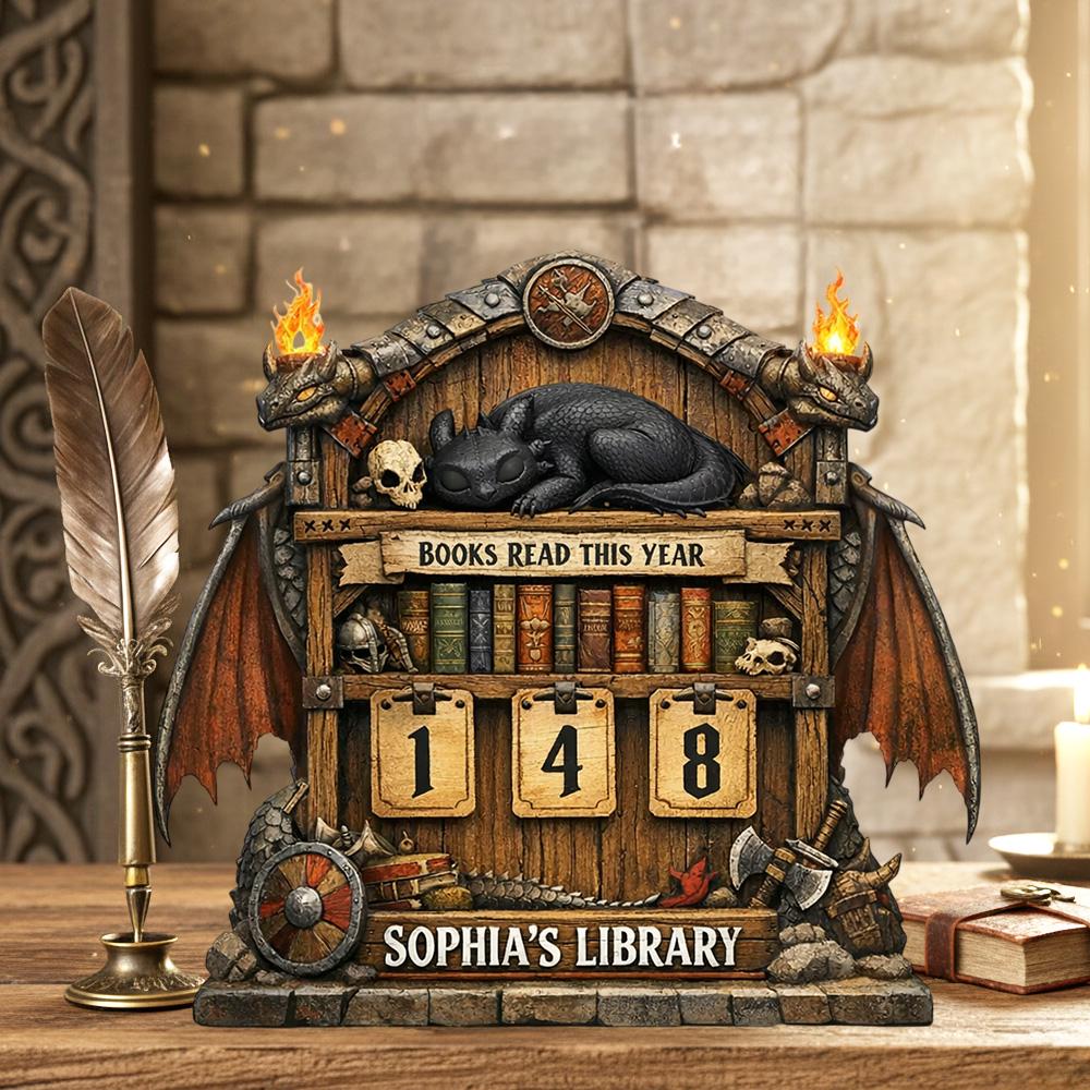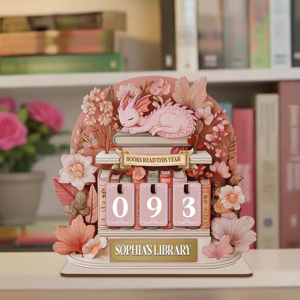 Dragon Books Read This Year Counter, Fantasy Book Tracker Sign, Bookish Desk Bookshelf Decor Gift