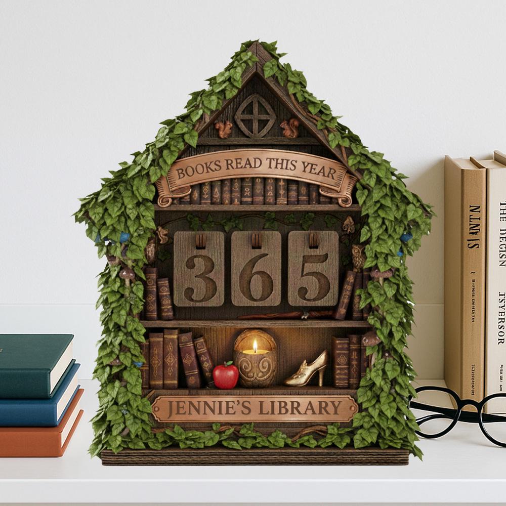 Personalized Wooden Book Tracker Sign, Books Read This Year Counter, Vintage Book Nook Bookshelf Desk Decor Gift