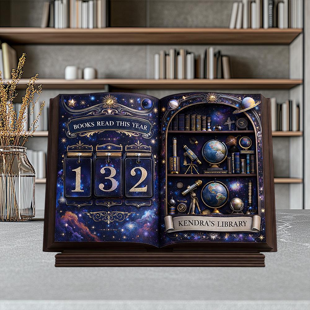 Personalized Wooden Book Tracker Sign, Books Read This Year Counter, Custom Name Library Desk Bookshelf Decor Gift