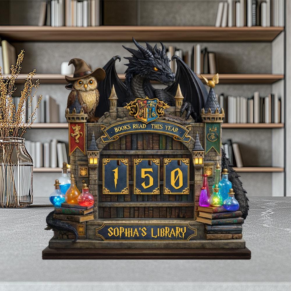 Dragon Books Read This Year Counter, Fantasy Book Tracker Sign, Bookish Desk Bookshelf Decor Gift