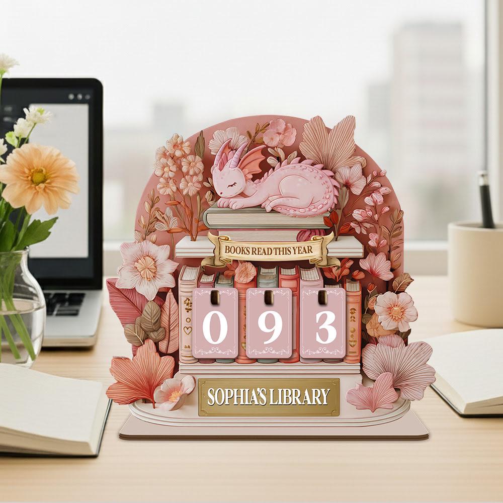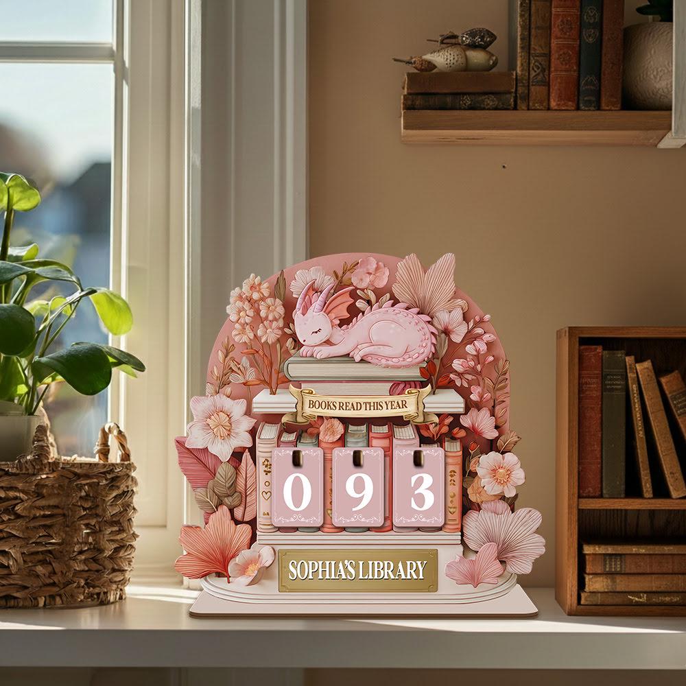 Dragon Books Read This Year Counter, Fantasy Book Tracker Sign, Bookish Desk Bookshelf Decor Gift