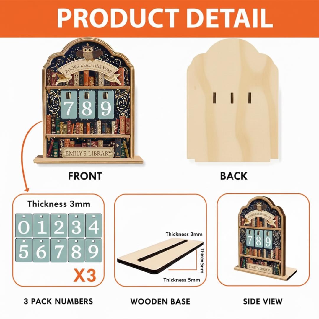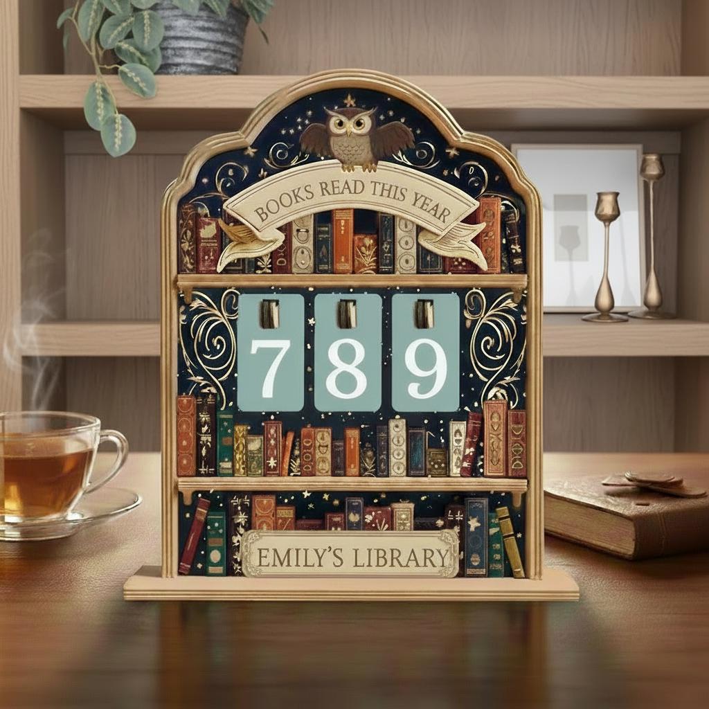 Turn your reading corner into a charming mini library display. Choose from beautifully themed designs like Celestial Blue, Witchy Purple, Vintage Brown, Forest Green, and more—while the cute owl stays center stage, helping you track how many books you’ve read this year with the flip-style book counter