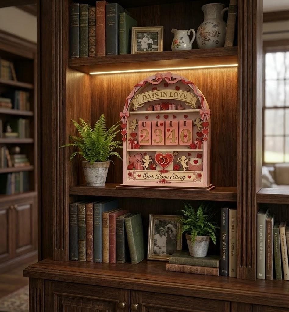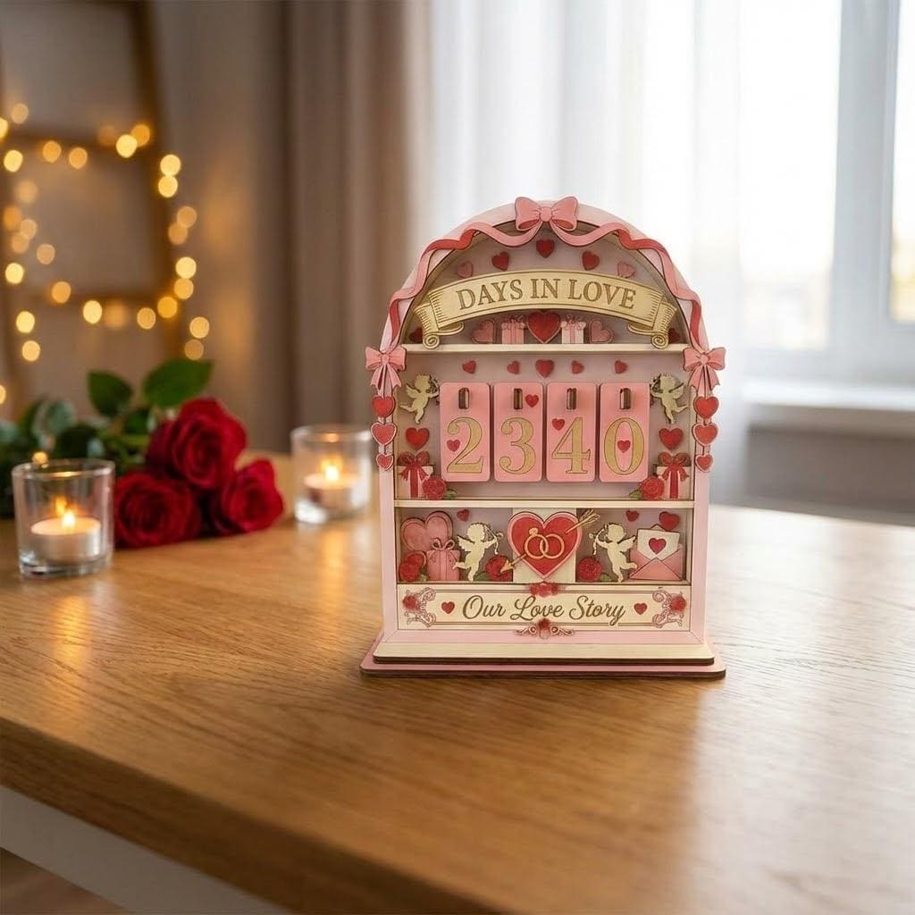 Turn your space into a romantic keepsake you’ll cherish every day. Designed with a charming flip-style anniversary counter, this Personalized Days in Love Tracker lets you celebrate your relationship by counting the days you’ve been together. Fully customizable for your special date, it doubles as elegant romantic couple decor for bedrooms, shelves, or side tables—making it a meaningful anniversary or Valentine’s Day gift.