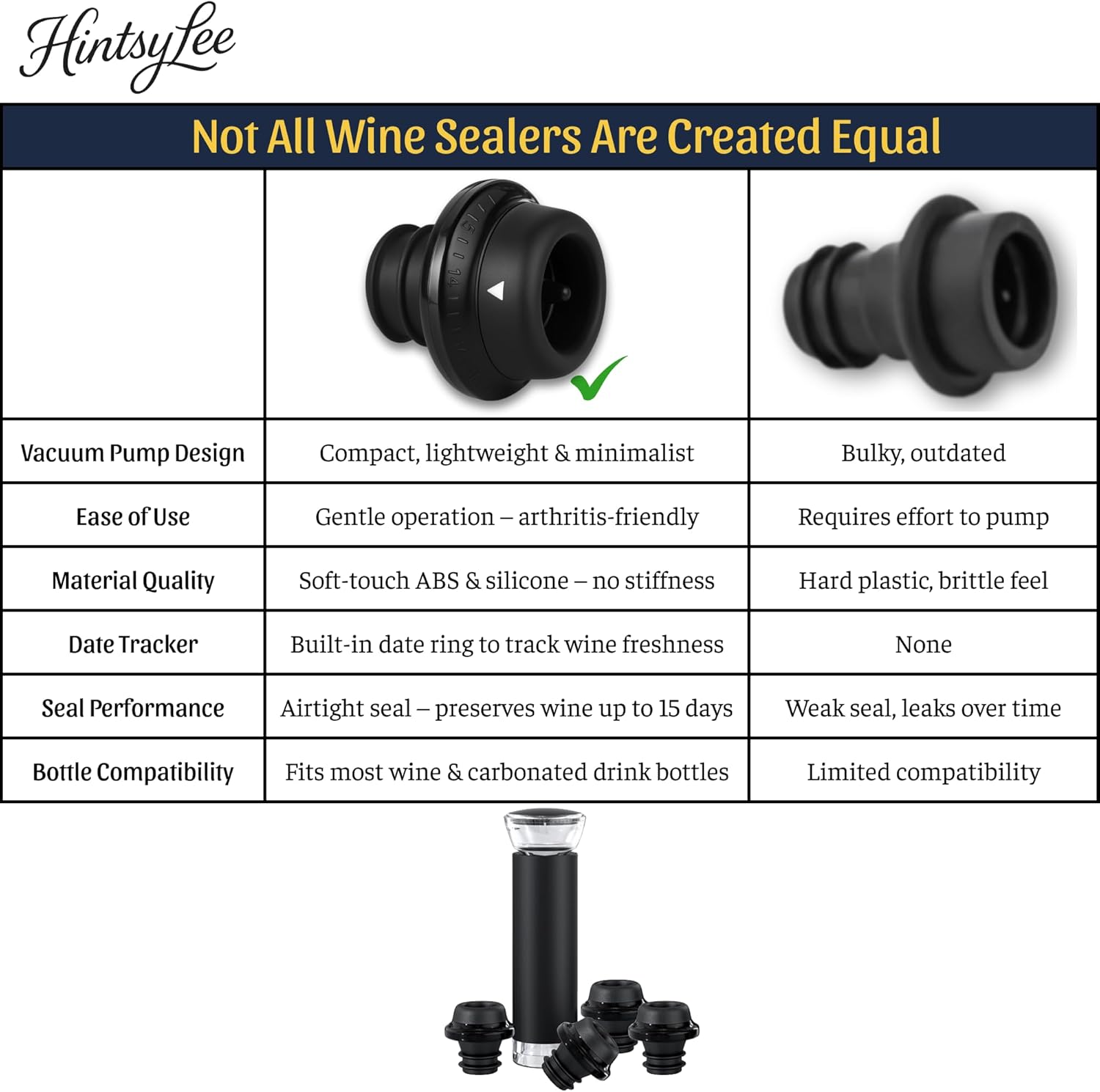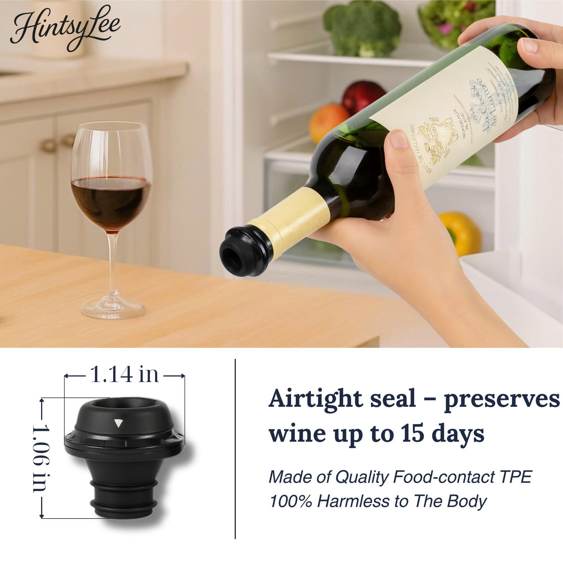 - Preserves Wine Freshness Up to 15 Days Enjoy your wine as if freshly opened every time. The Hintsylee airtight wine preserver creates a leak-proof vacuum seal that slows oxidation and retains aroma and flavor for up to 15 days — a must-have wine saver for enthusiasts and collectors.