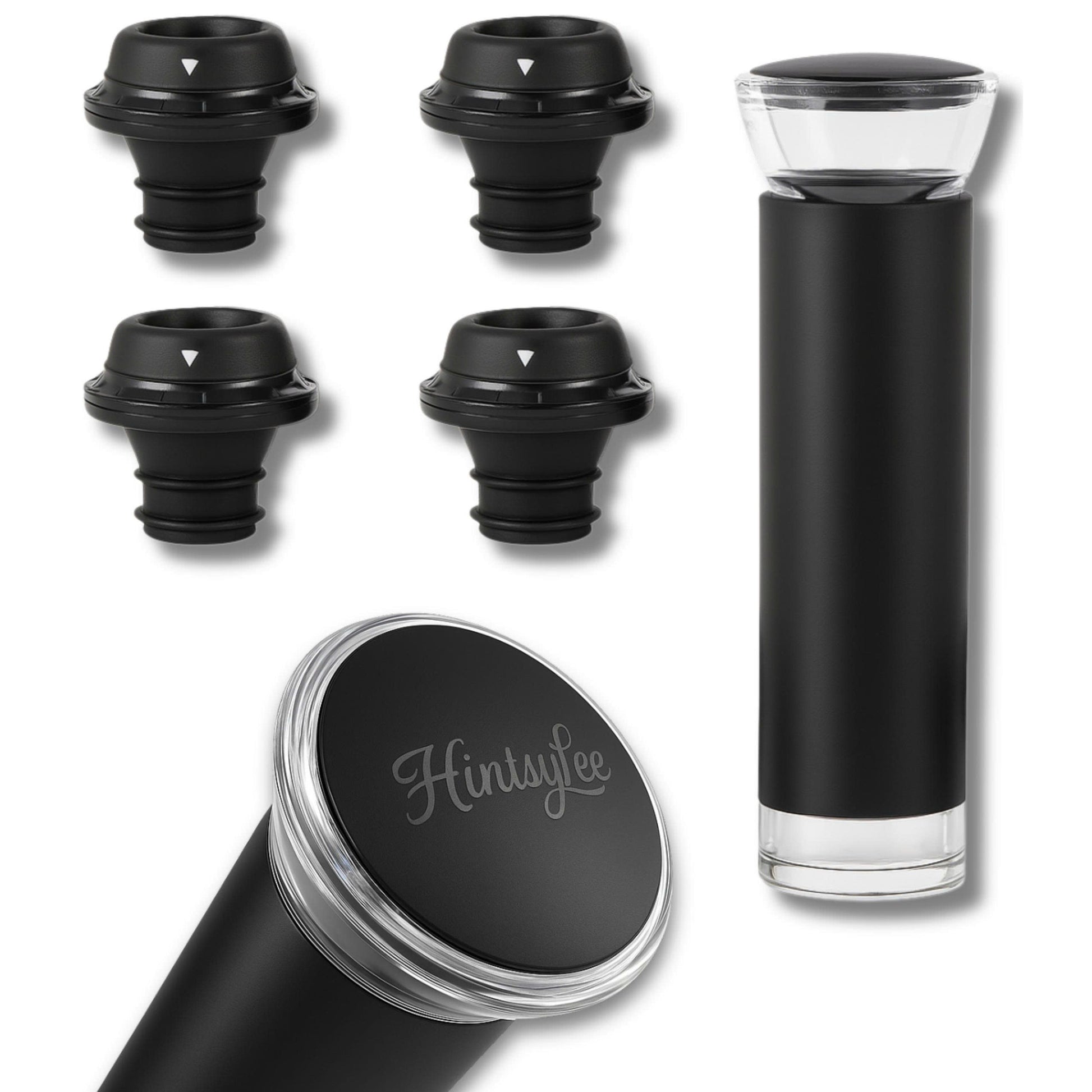 Wine Vacuum Pump & 4 Reusable Stoppers – Airtight Wine Preserver Set Keeps Wine Fresh Up to 15 Days – Manual Wine Saver Bottle Sealer Kit & Gift for Wine Lovers (Black)